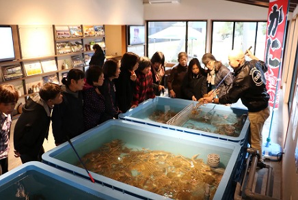 朝獲れのカニを生簀(いけす)で管理し、鮮度抜群の状態で販売しています。