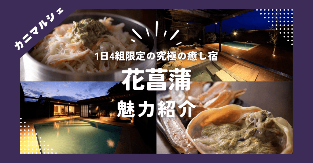 冬だけの特別体験「カニマルシェプラン」と、心も体もときほぐす3種類の温泉が楽しめる「花菖蒲」。