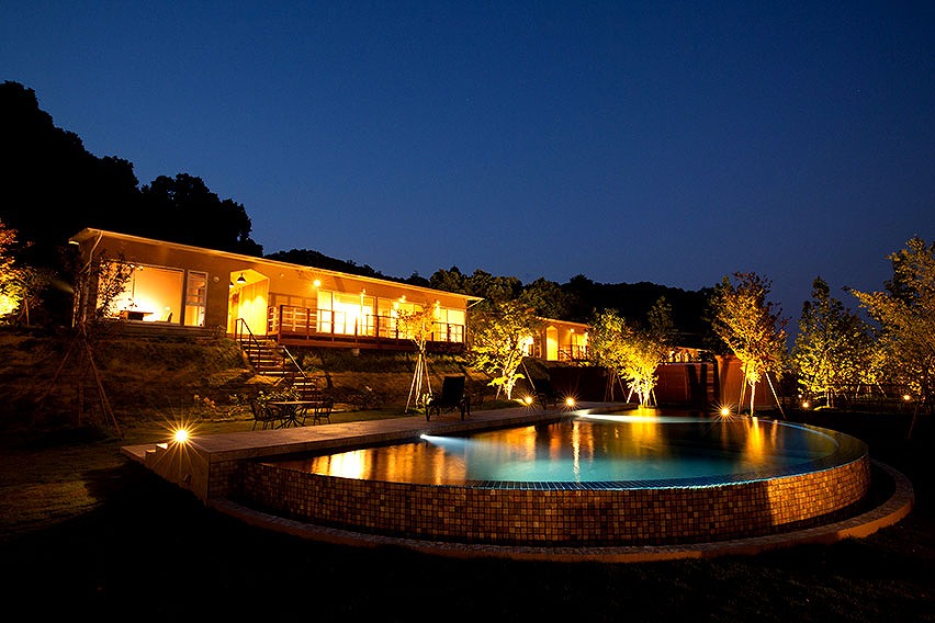 リビングやプールから丹後の海を一望できる7棟のヴィラ。