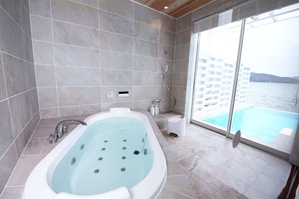まるで海に浮かぶような絶景ロケーションと、プライベートプール・温泉・BBQがそろう、特別な休日を約束してくれます。
